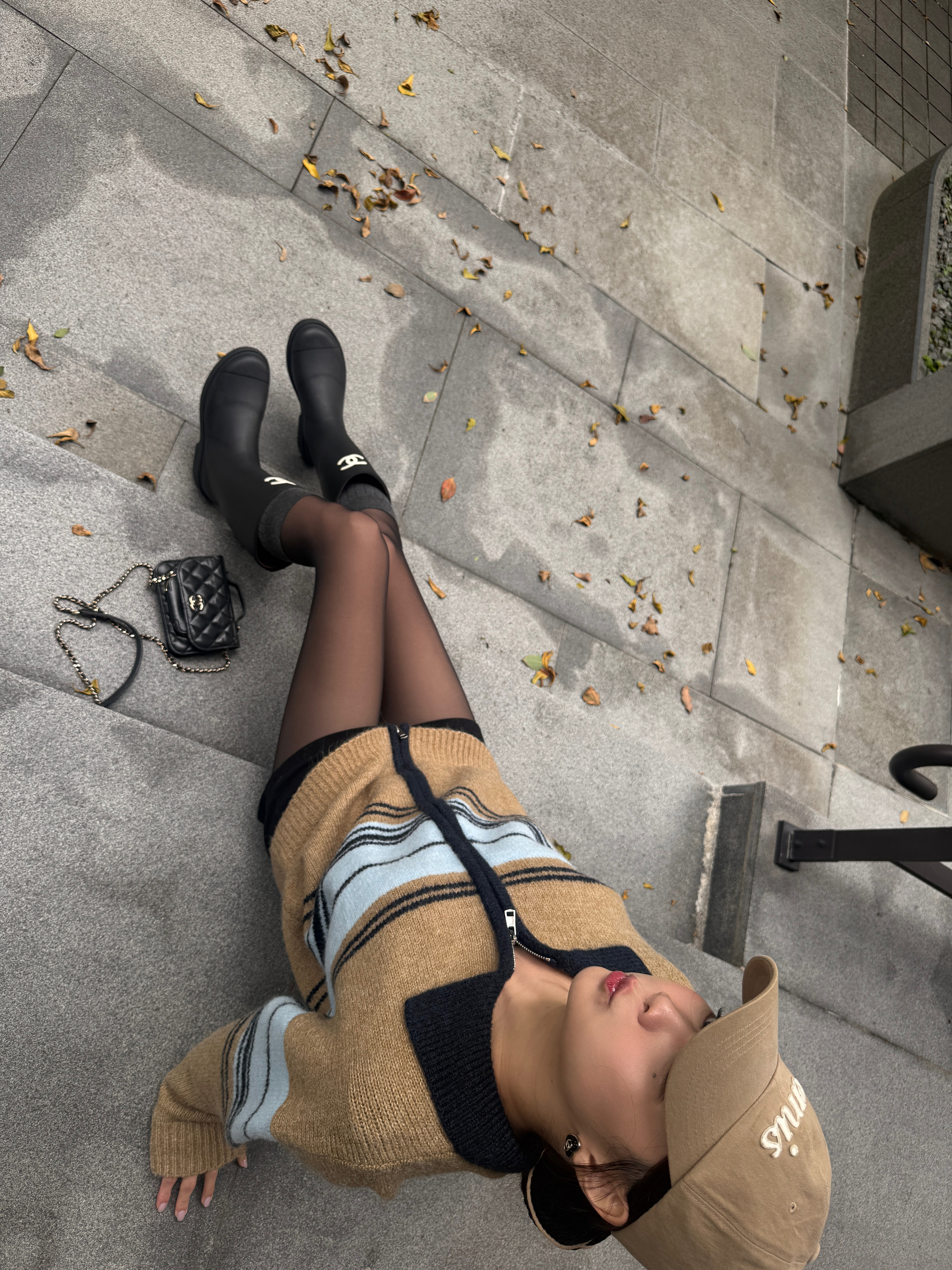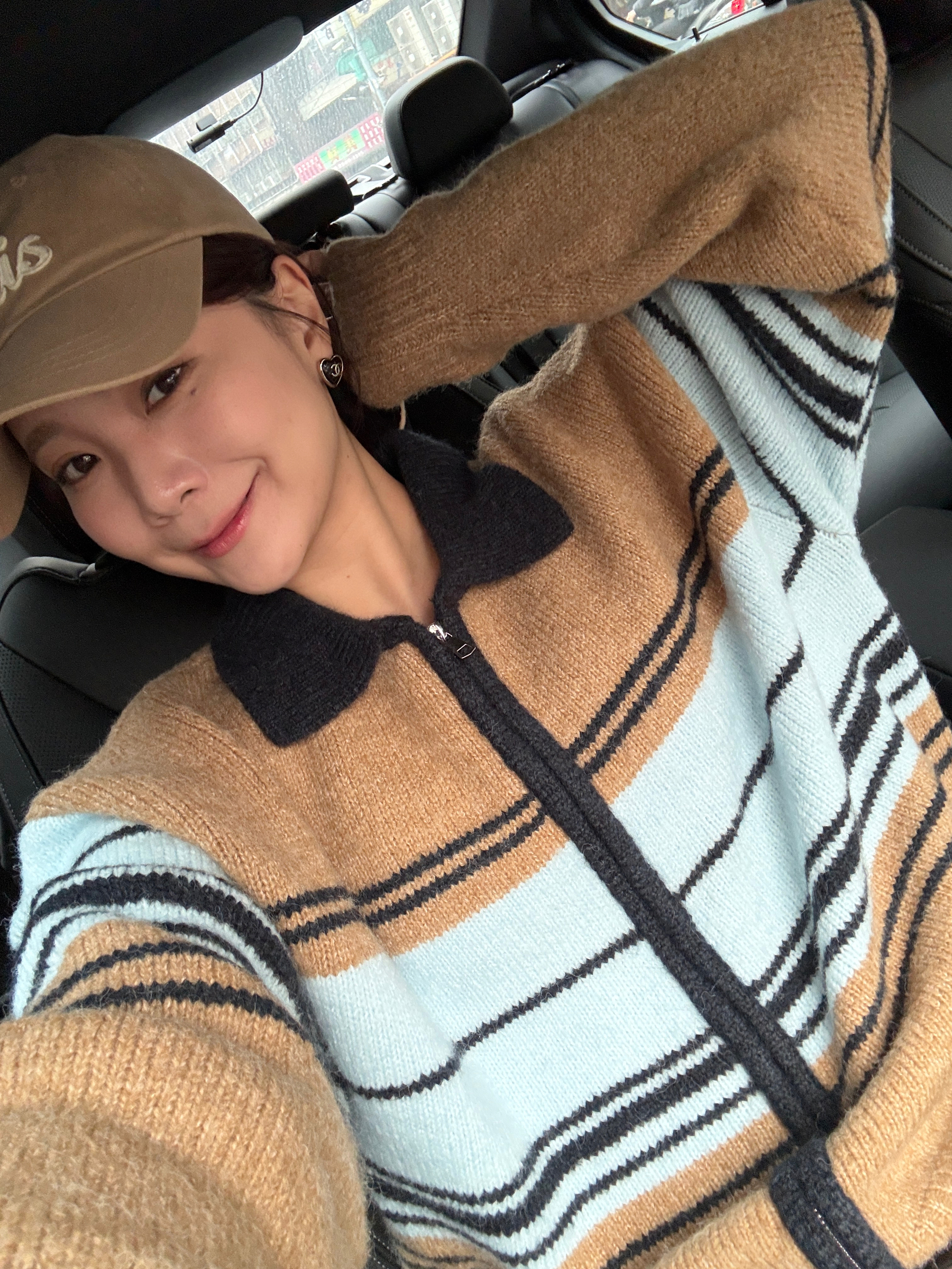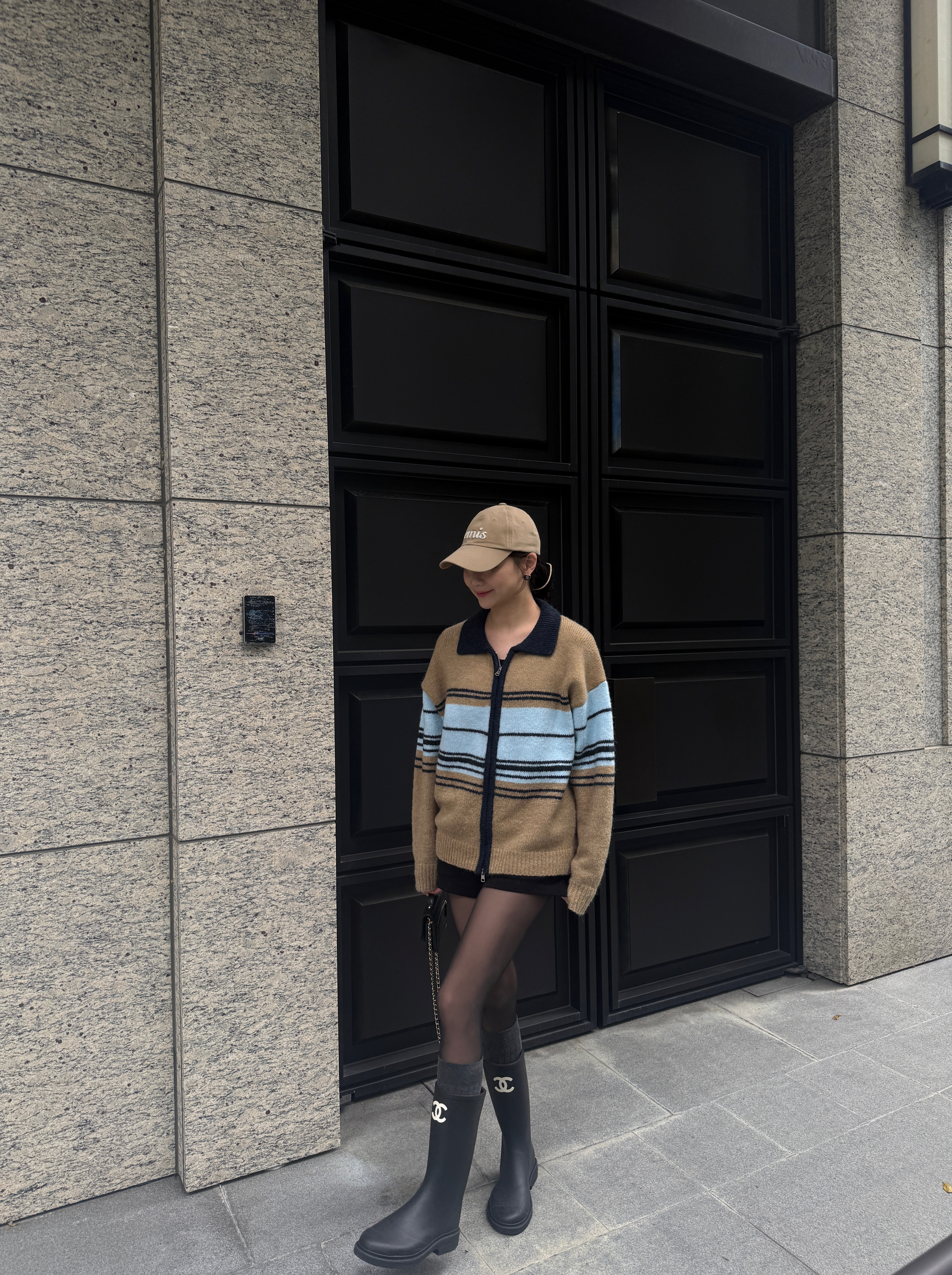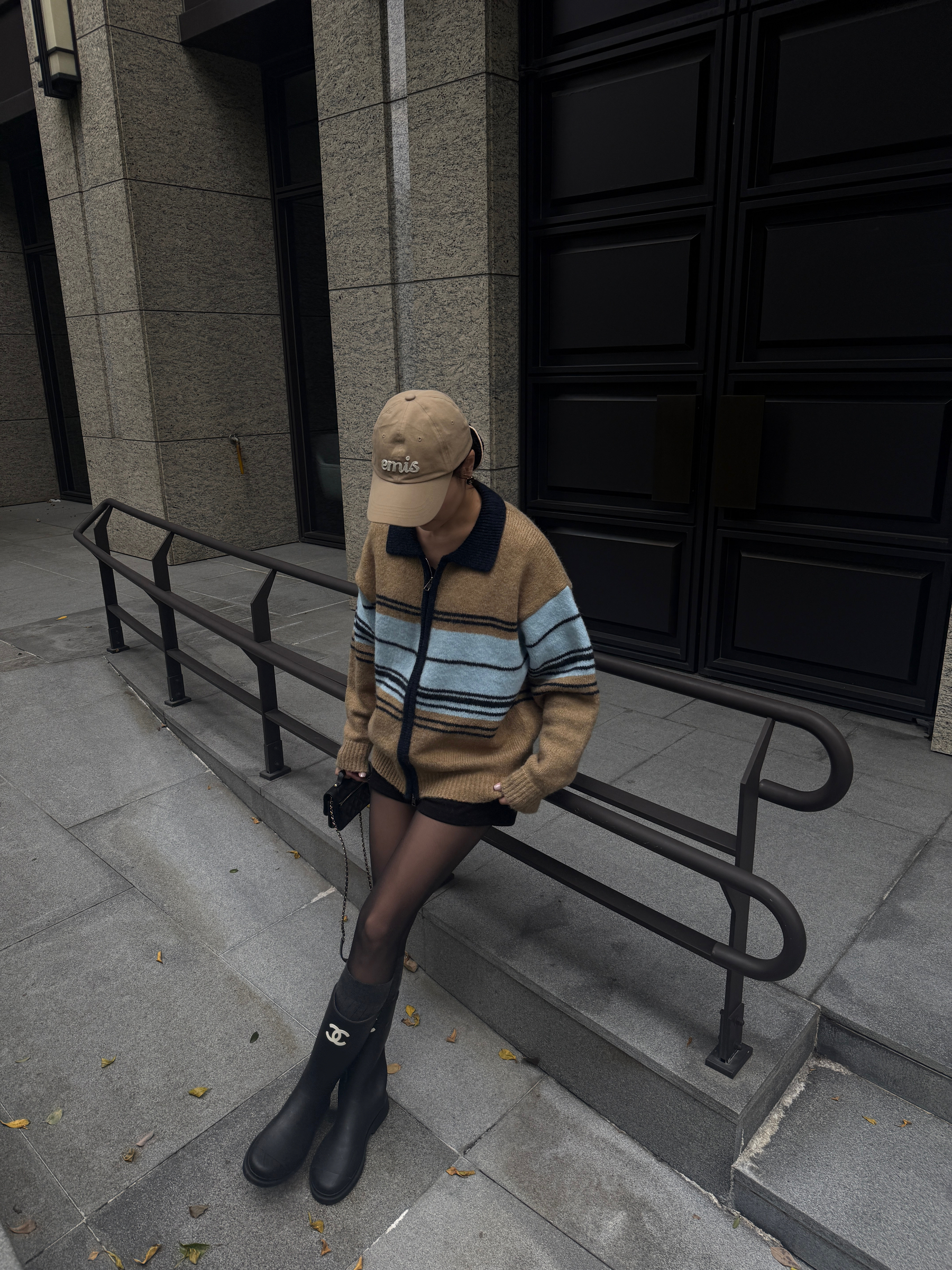 C142正韓🇰🇷拼接撞色條紋翻領毛衣外套